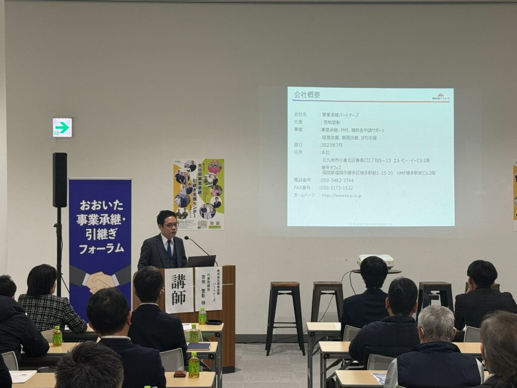 2025年11月25日 おおいた 事業承継・引き継ぎフォーラム(日田)にて、宮地が講師を務めました。